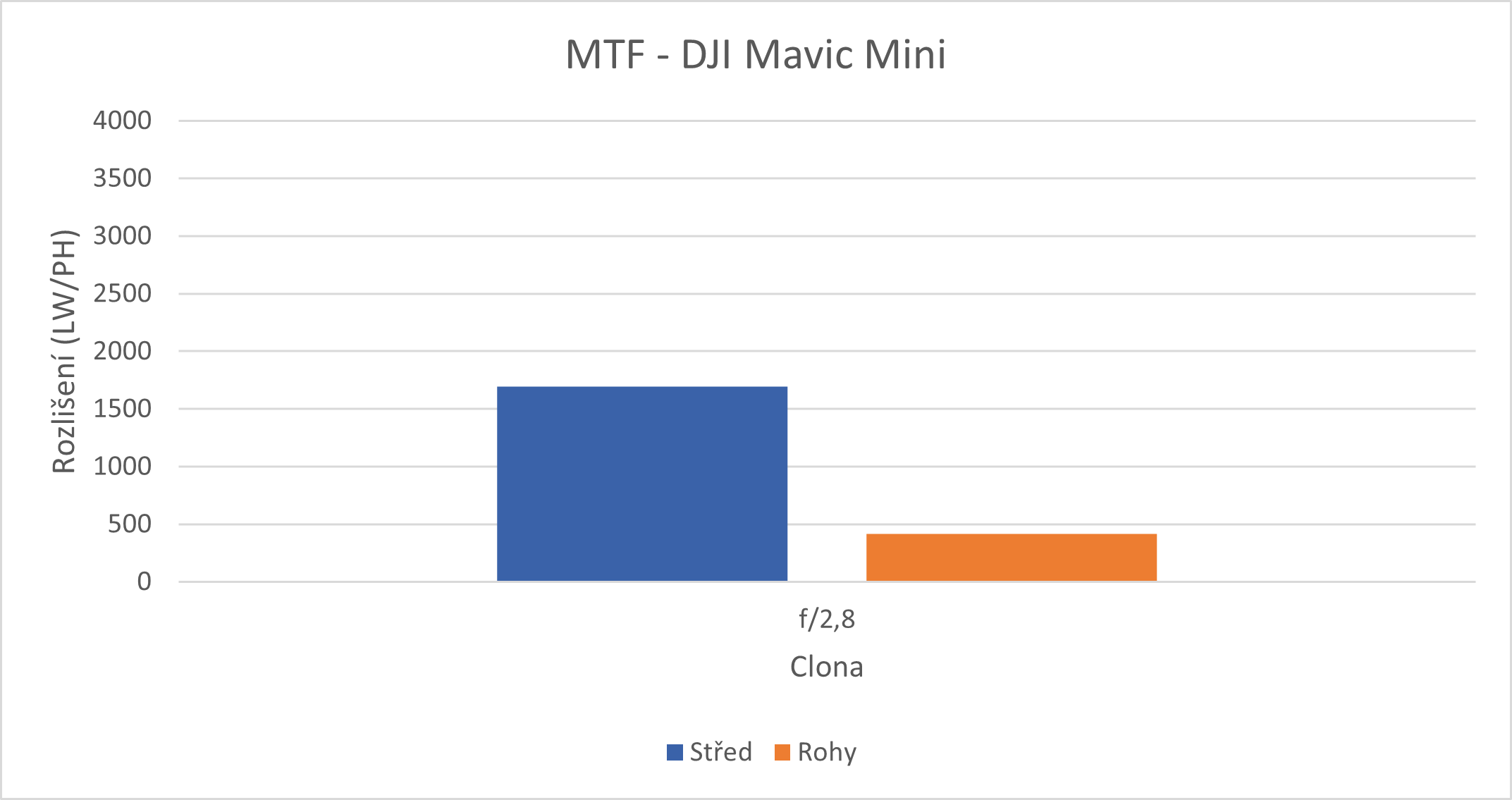 Na tomto dronu je ostrost velmi nízká. A to jak na jeho středu, tak samozřejmě i v rozích. Na středu bylo naměřeno 1693 LW/PH a v rohu pouhých 418 LW/PH.